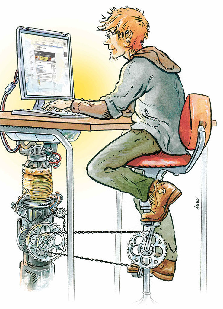 Un dessin sur le thème des énergies alternatives, réalisé pour l'APAS. Réalisé à l'aquarele.